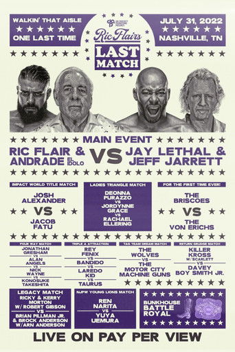 On July 31st at 6:05pm ET one of the greatest professional wrestlers of all time, 16-time former World Heavyweight Champion, two-time WWE Hall of Fame inductee, member of NWA Hall of Fame and Professional Wrestling Hall of Fame - he is "The Nature Boy" Ric Flair who will step into the ring for one final match broadcasted exclusively and live on FITE straight from the Nashville Fairgrounds. In the main event of the evening Ric Flair will walkin' that aisle one last time for the final match of his 50-year career. "The Narural Boy" teaming with Andrade El Idolo to face off Jay Lethal and Jeff Jarrett. This long awaited last match will be part of the pro wrestling's history and you do not want to miss it.