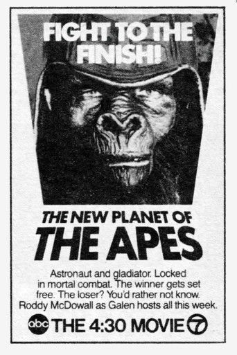 Human astronauts Burke and Virdon, with their chimp companion Galen, are forced to become involved in the strange gladiatorial games of the district run by prefect Tolar. The trio escape the gorilla police and find an abandoned government research project with a computer containing a vast amount of recording information about the old human-ruled world. [The second of five telefilms edited from episodes of the 1974 TV series; this film combines the episodes "The Gladiators" and "The Legacy"]