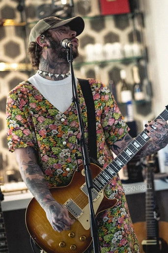 Post Malone performs with Travis Barker, Brian Lee, and Nick Mack in a tribute concert to Nirvana. The live-stream was performed on April 24, 2020 to raise funds for the United Nations Foundation's COVID-19 Solidarity Response Fund for The World Health Organization.
